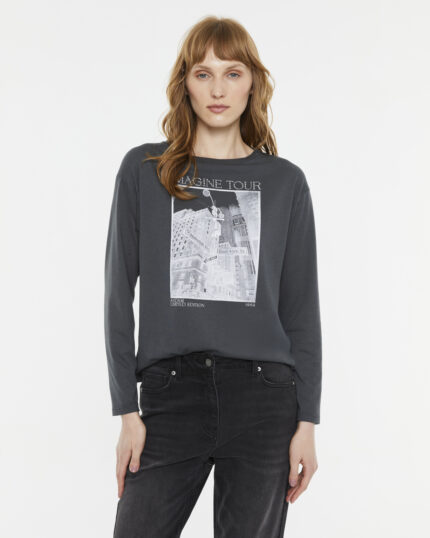 Camiseta Andam estampado frontal manga larga