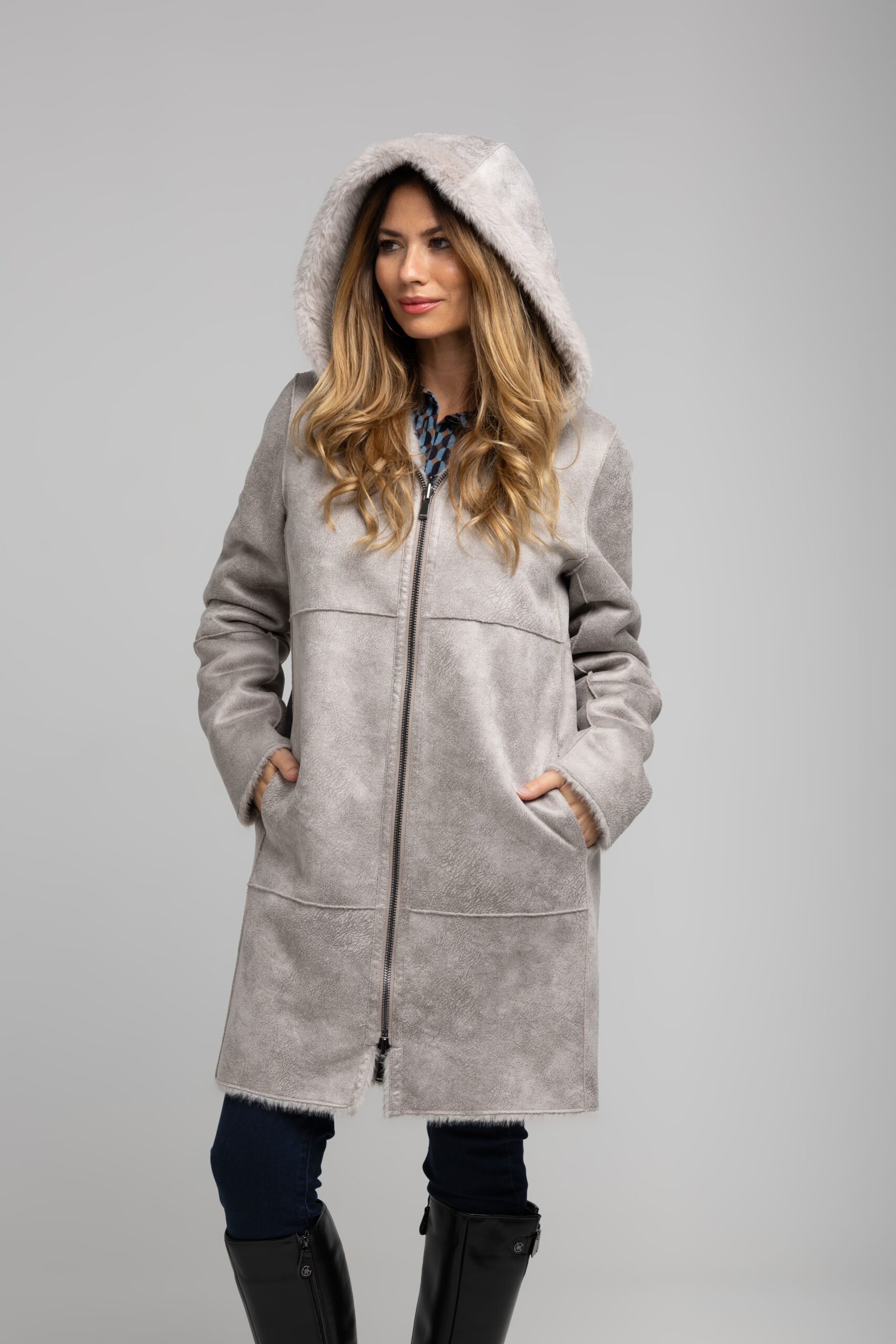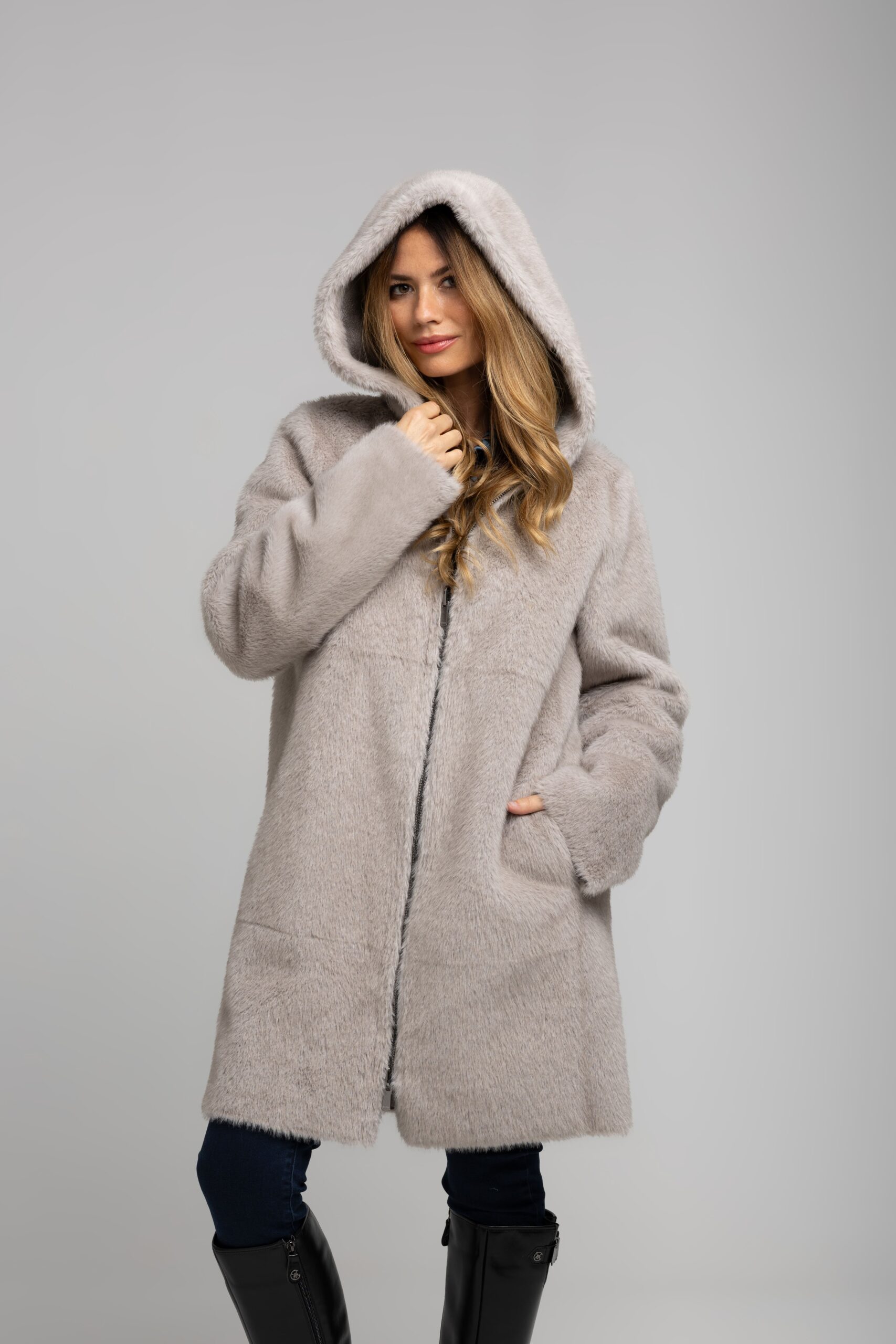 El abrigo reversible de Rever Mile está diseñado para ofrecer dos looks en una sola prenda: un exterior en tono gris claro con textura suave y un interior de peluche cálido y agradable al tacto. Su diseño recto y moderno, con capucha amplia y cierre de cremallera, lo convierten en una prenda ideal para el invierno, cómoda y fácil de combinar con cualquier outfit.