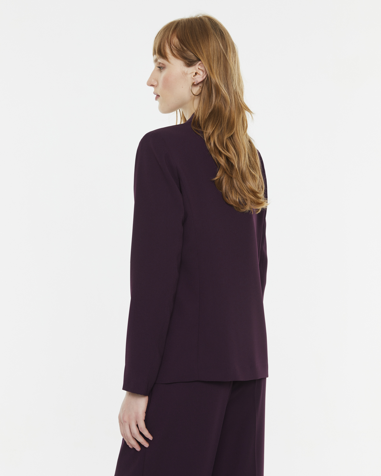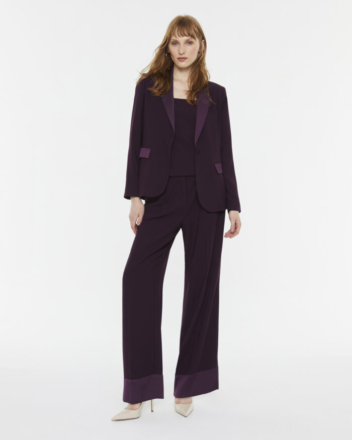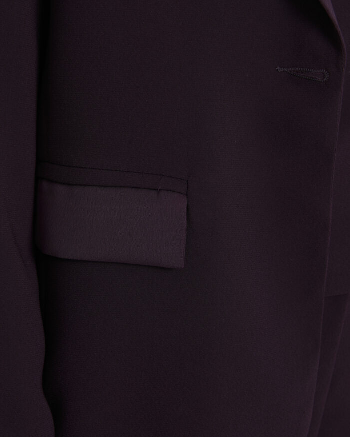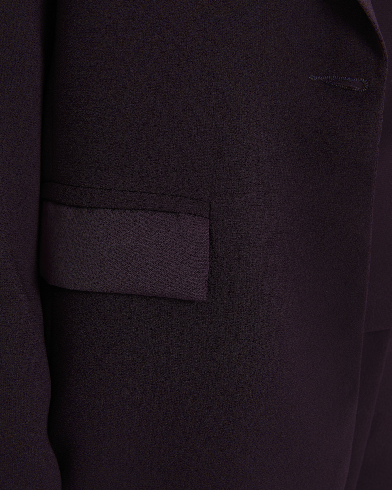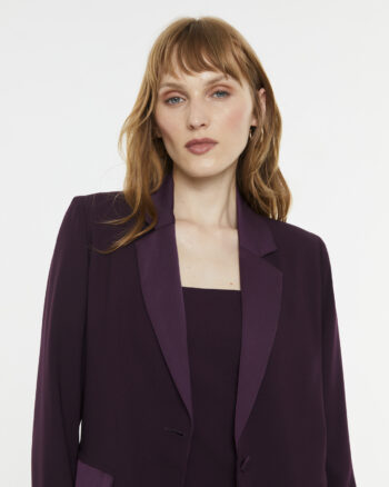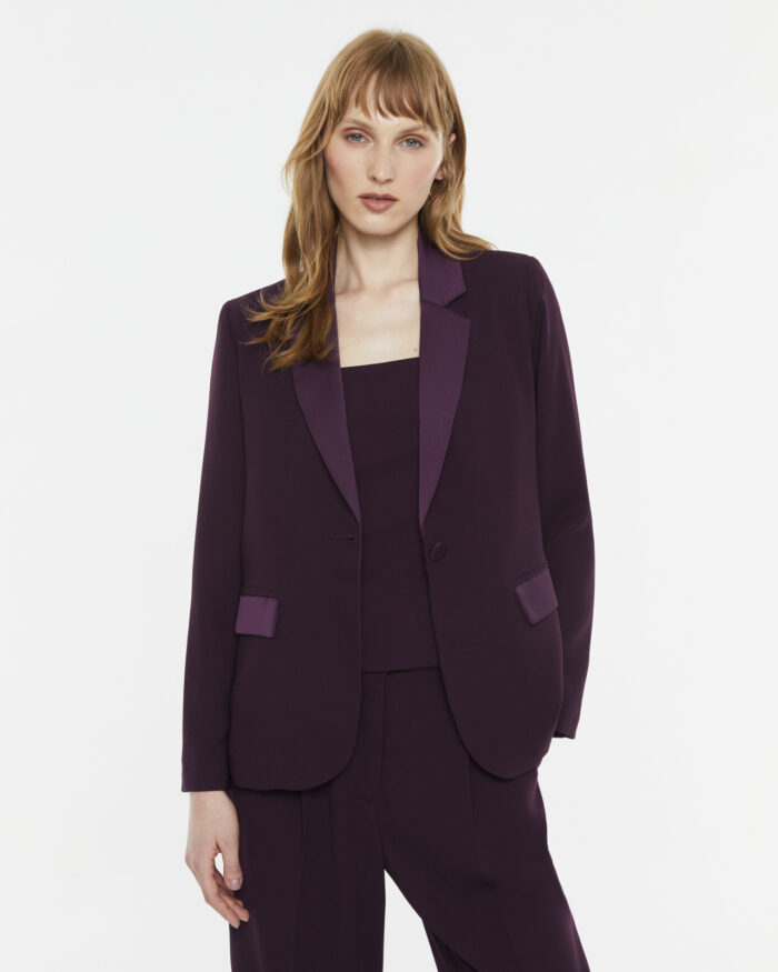 Blazer de manga larga y cuello solapa. La tapeta de los bolsillos y solapa estan confeccionados con el mismo tejido pero por la parte satinada. Puedes encontrar su pantalón a conjunto. Regular fit.