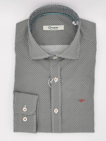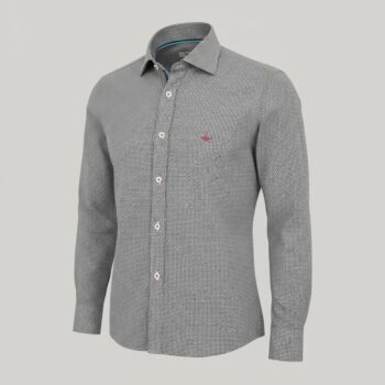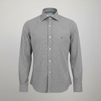 Camisa de hombre confeccionada en un tejido de algodón suave con microdibujo. Su diseño actual y elegante se completa con cuello clásico, botones a contraste y logo bordado en el pecho. Una prenda versátil que combina perfectamente tanto con looks formales como con estilismos más casuales.