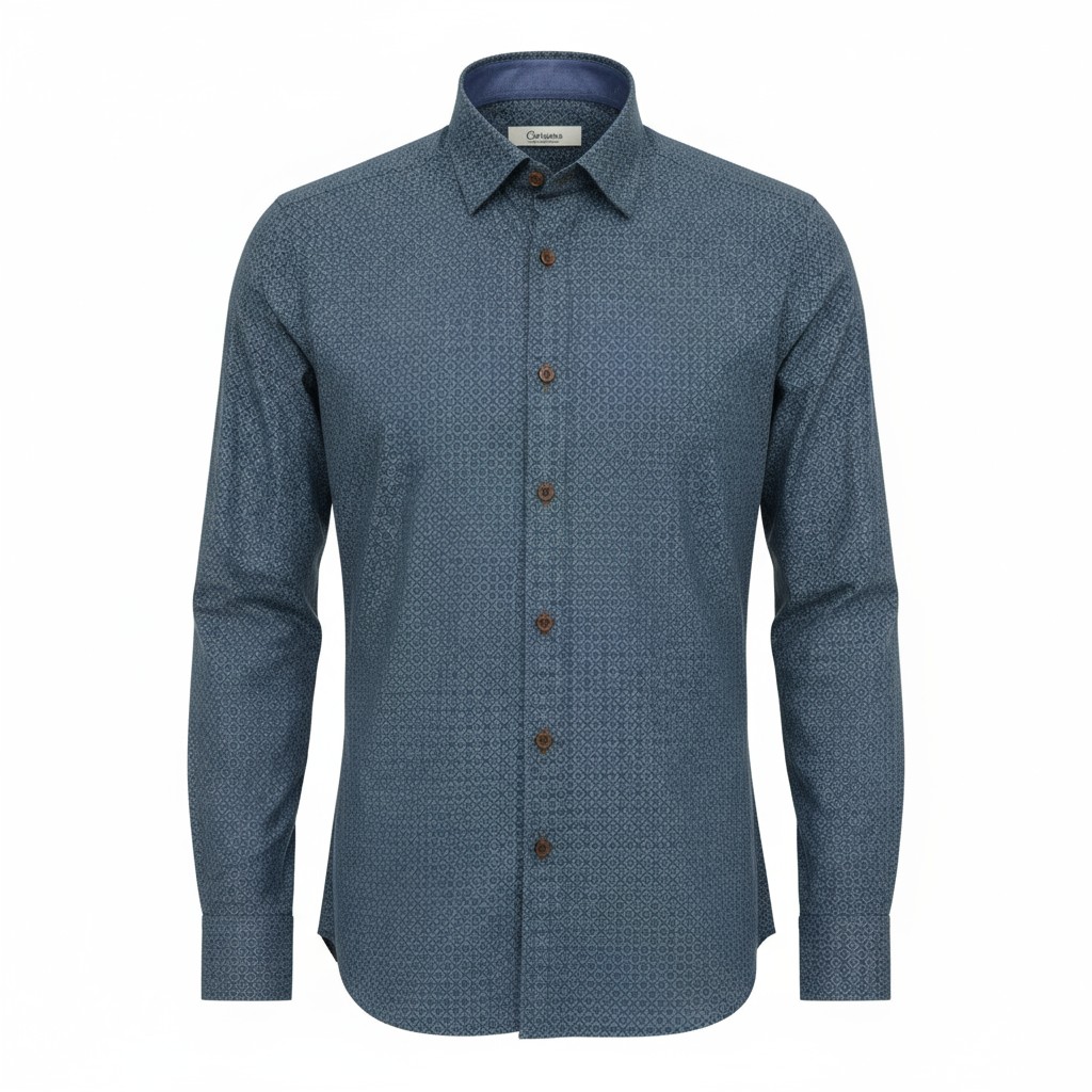 Camisa de manga larga con estampado floral en tonos azules, confeccionada en tejido suave y ligero para una comodidad excepcional. Su corte ajustado realza la silueta masculina, mientras que el cuello clásico y los botones frontales aportan un toque elegante y moderno.