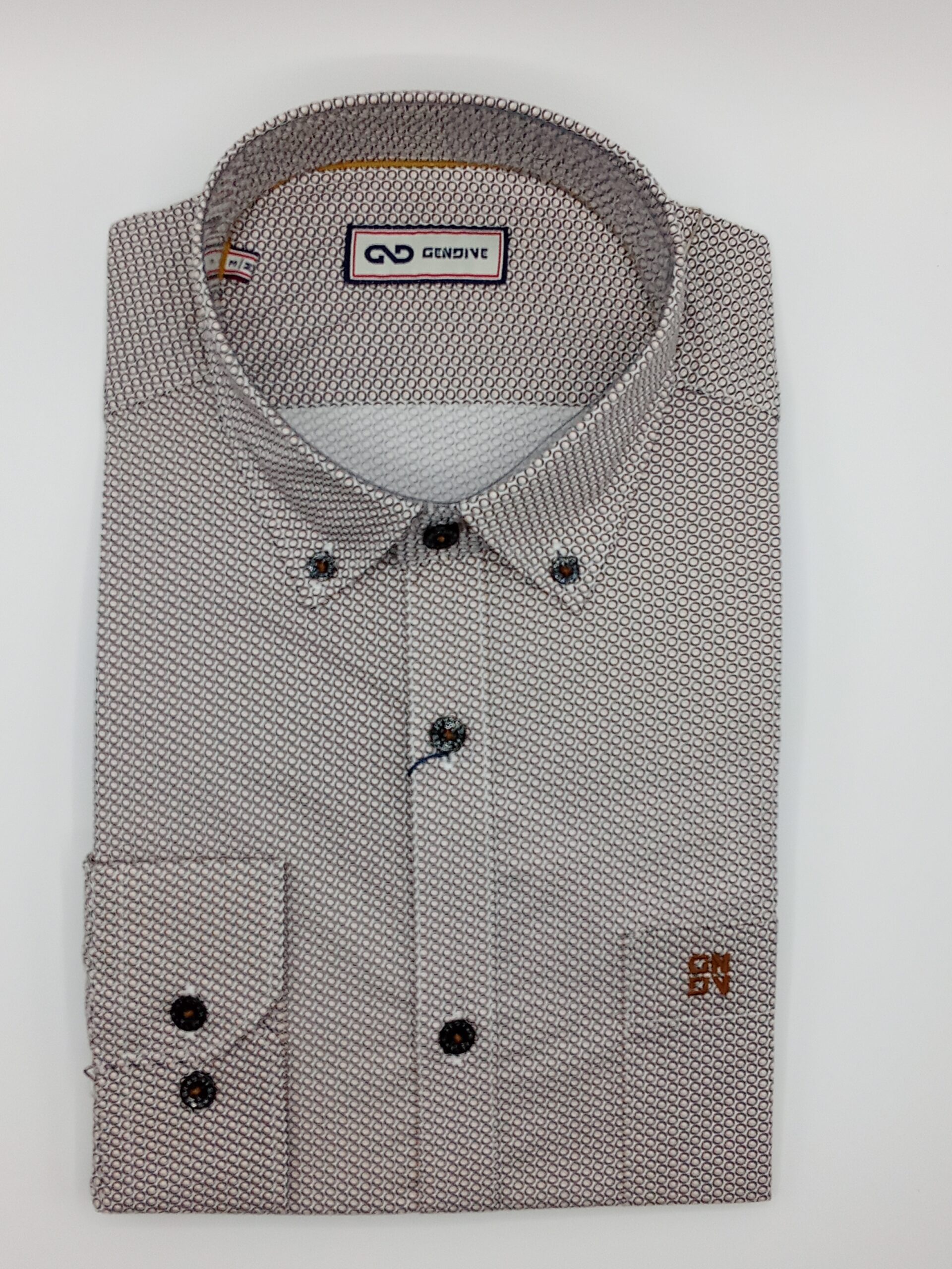 Camisa hombre Gendive estampado circles manga larga diseñada para ofrecer un estilo moderno y elegante en cualquier ocasión. Esta prenda de Lucas LCS Benissa destaca por su tejido suave, su corte actual y su original estampado de pequeños círculos que aporta personalidad sin perder sobriedad. Incluye cuello con botón, cierre frontal clásico y manga larga para un acabado pulido. El bolsillo en el pecho incorpora un logo bordado que añade un detalle distintivo y sofisticado. Perfecta para combinar con vaqueros o pantalón de vestir, convirtiéndose en una camisa versátil, cómoda y con presencia para el día a día o eventos más formales.