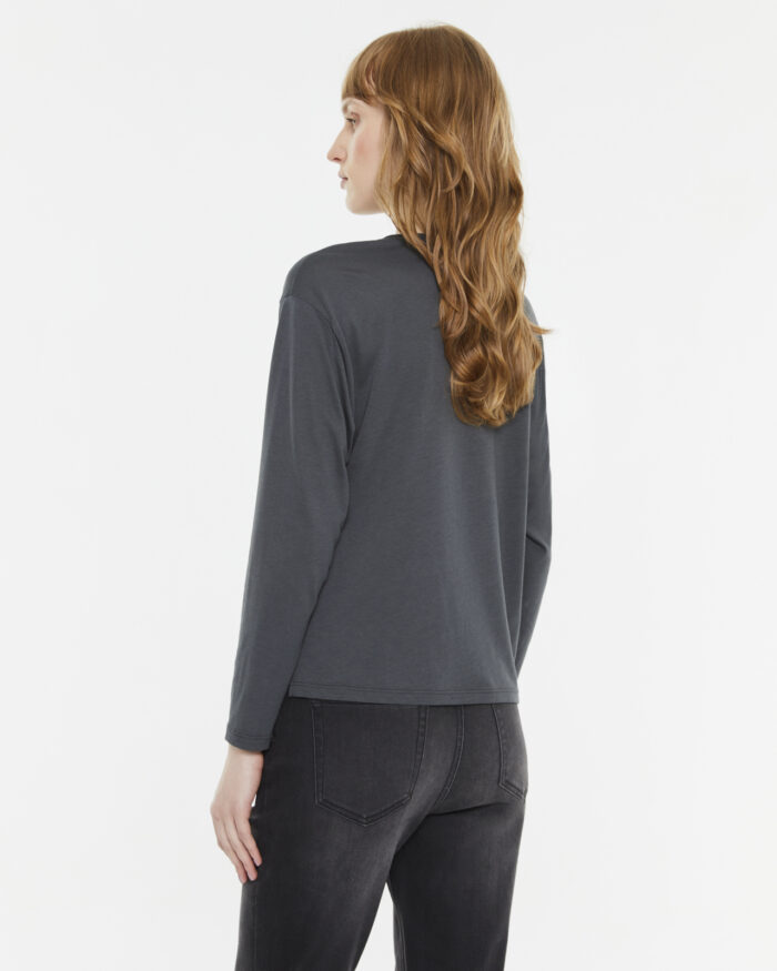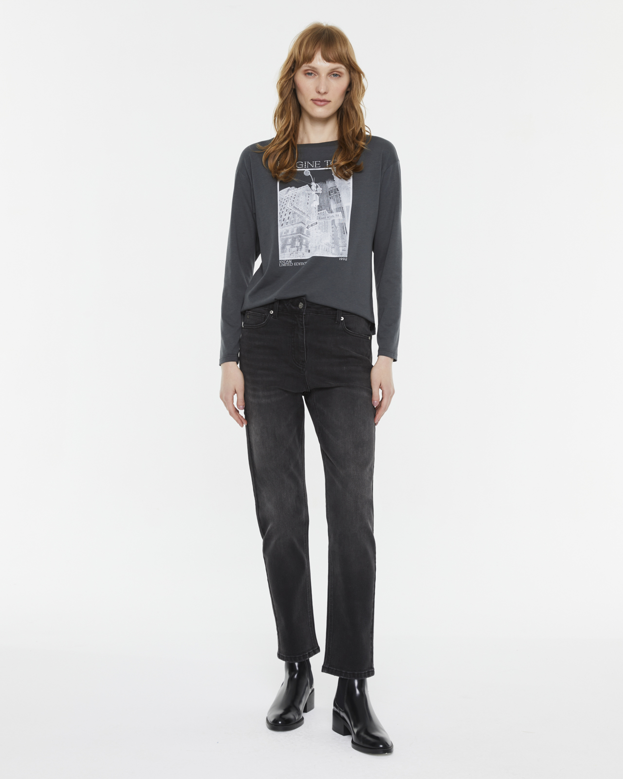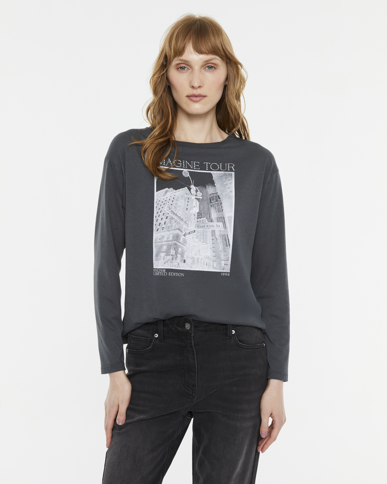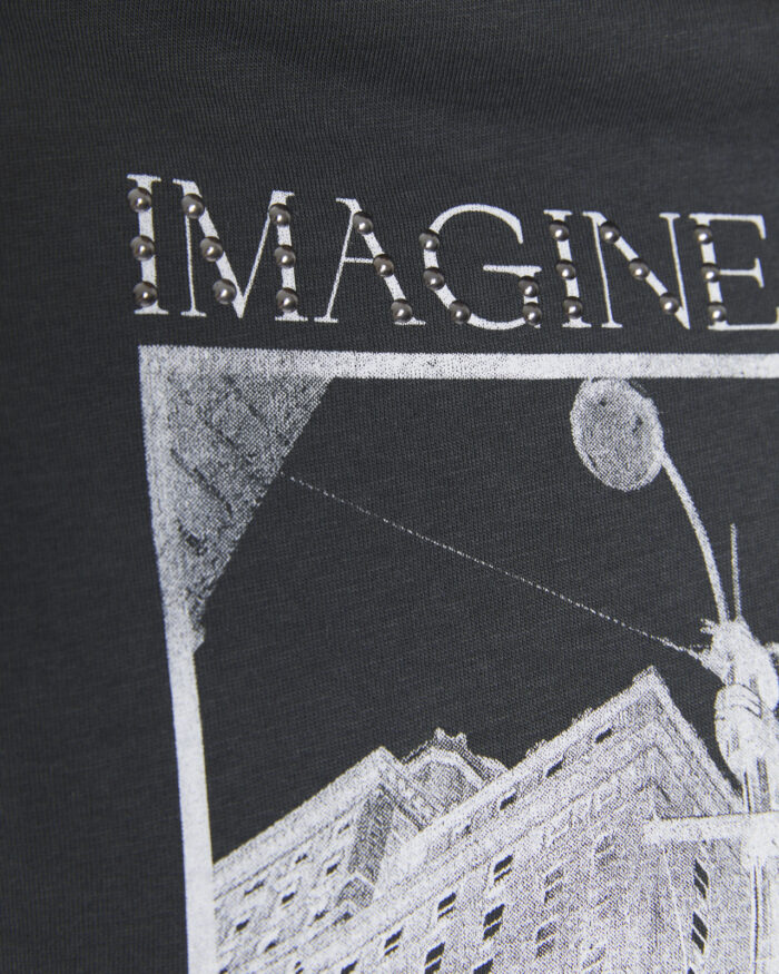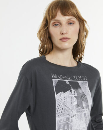 Camiseta de escote redondo y manga larga. Detalle de dibujo frontal con tachas en las letras. Regular fit.