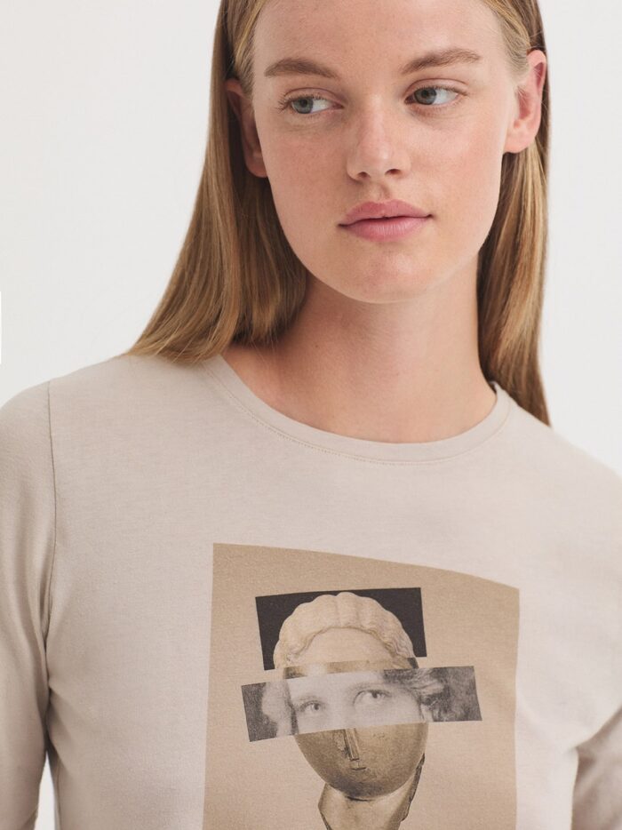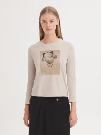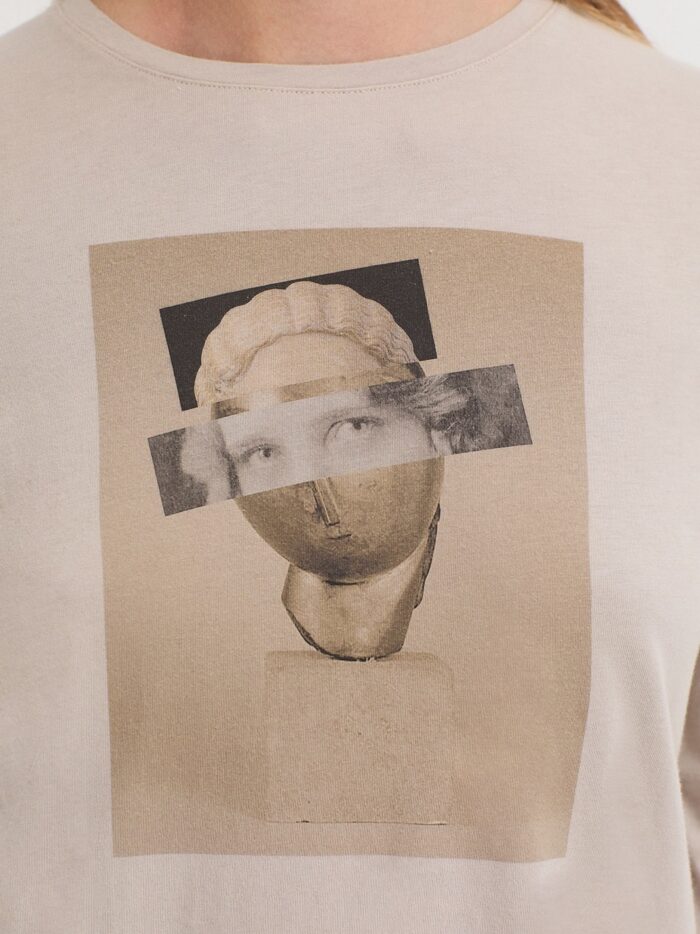 Camiseta de algodón orgánico con estampado Collage, escote redondo y manga corta. Made in Portugal.