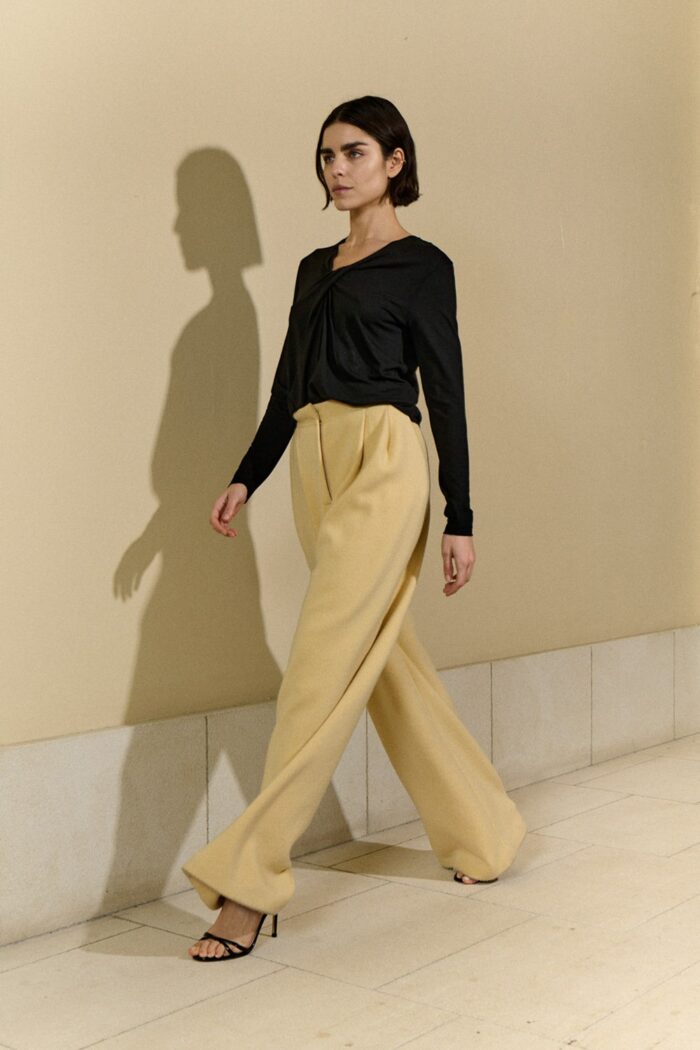 Camiseta con escote en pico y detalle de nudo. Prenda ligeramente entallada.