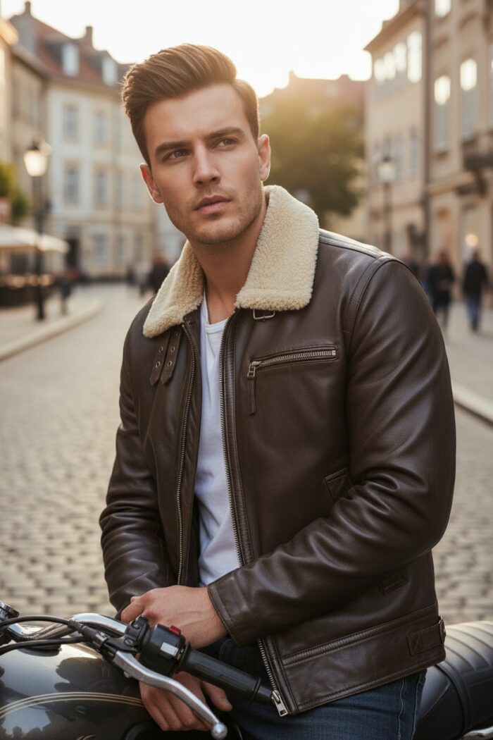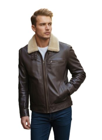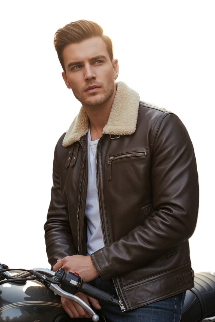 Cazadora piel Aviator marrón cuello borreguillo desmontable