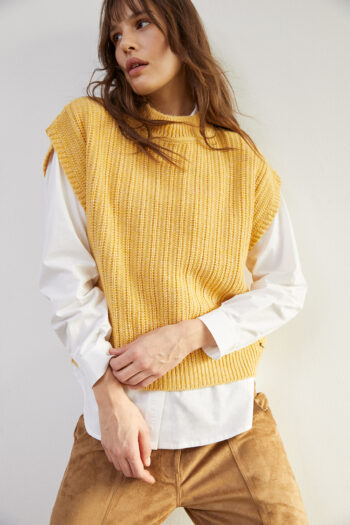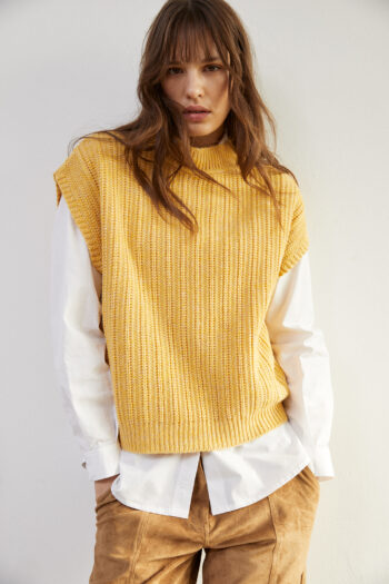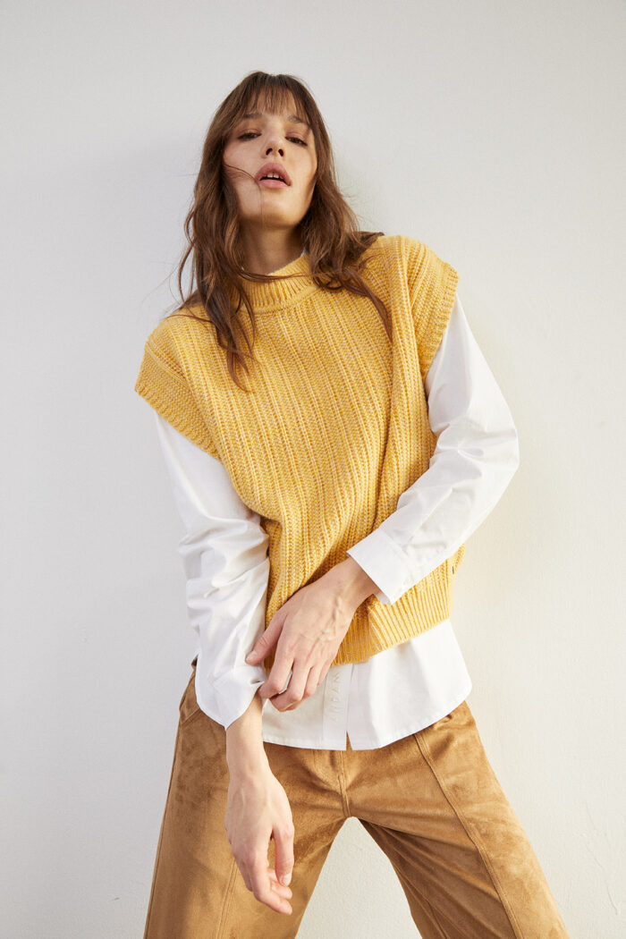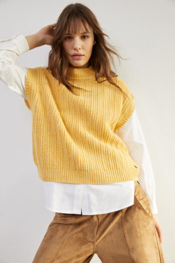 Chaleco de punto con cuello perkins. Confección de canalé en escote y bajo. Regular fit.