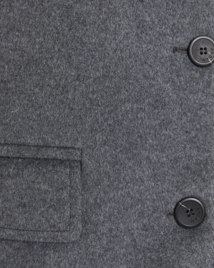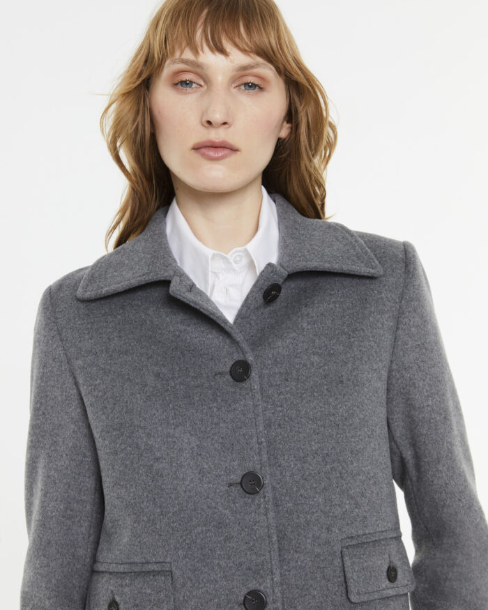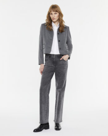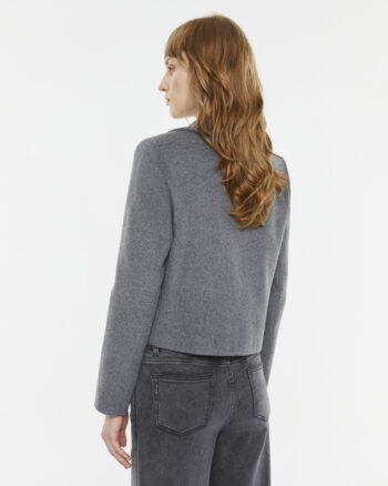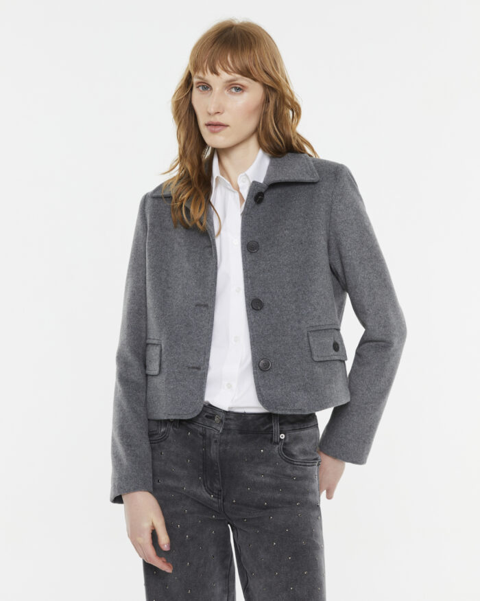 Chaqueta cropped en paño, manga larga y cuello camisero. Cierre frontal con botones. Detalle de bolsillos tapeta con botones. Regular fit.