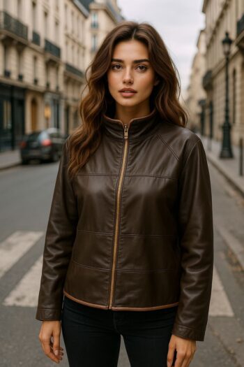 chaqueta piel mujer fabio zurita marrón diseñada para aportar elegancia y estilo en los looks del día a día. Esta prenda de Lucas LCS Benissa está confeccionada en auténtica piel de alta calidad, con un tacto suave y un acabado impecable que realza la silueta sin renunciar a la comodidad. Su diseño incluye cierre de cremallera metálica, cuello alzado y costuras decorativas que aportan un toque moderno y sofisticado. El color marrón es versátil y atemporal, perfecto para combinar con jeans, vestidos o prendas más formales. Una chaqueta duradera, favorecedora y pensada para acompañarte durante muchas temporadas.