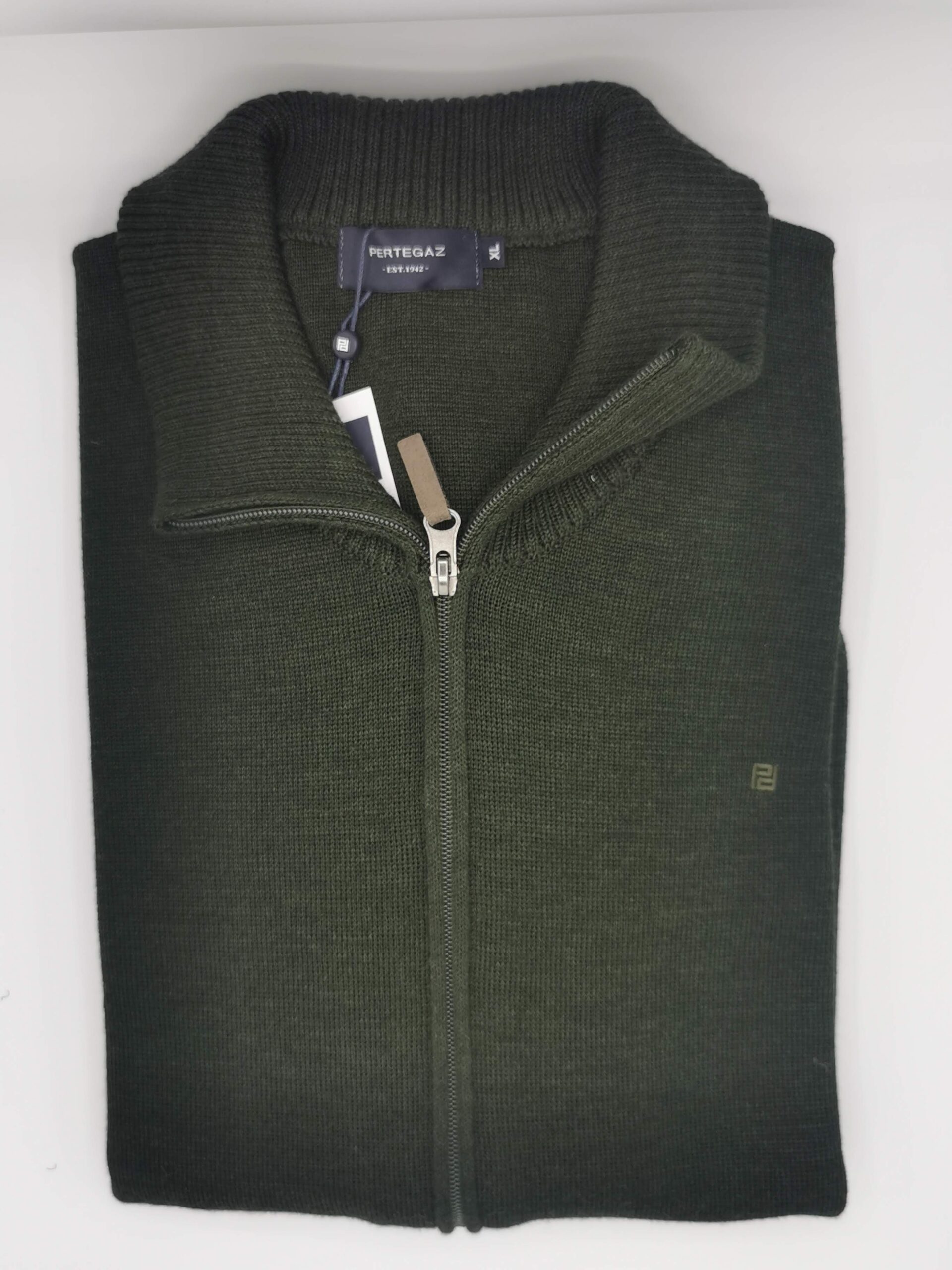 Su diseño regular fit con cuello alto y cremallera completa ofrece una estética moderna y funcional, perfecta para el día a día. Los acabados acanalados en el cuello, puños y bajo garantizan un ajuste cómodo y duradero, mientras que el logo bordado de Pertegaz en el pecho añade un toque discreto de elegancia.