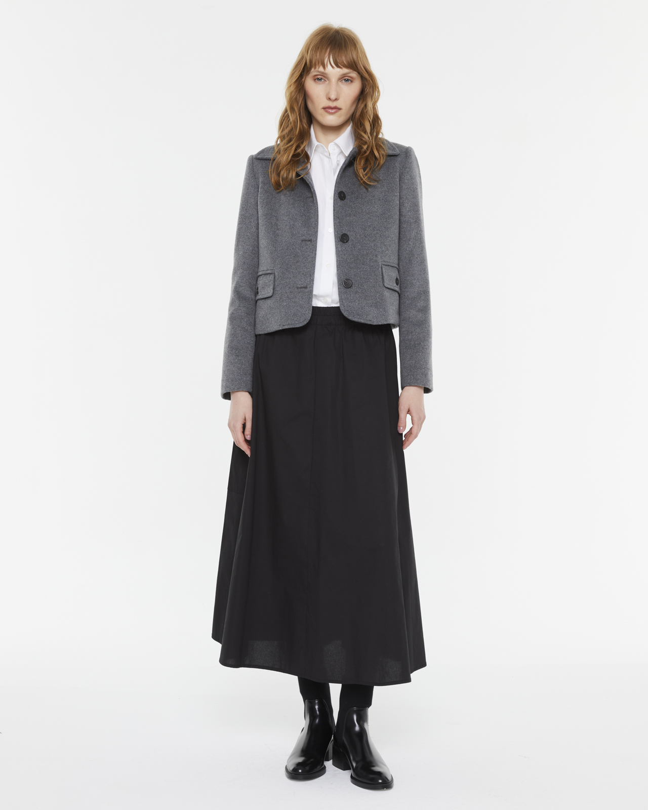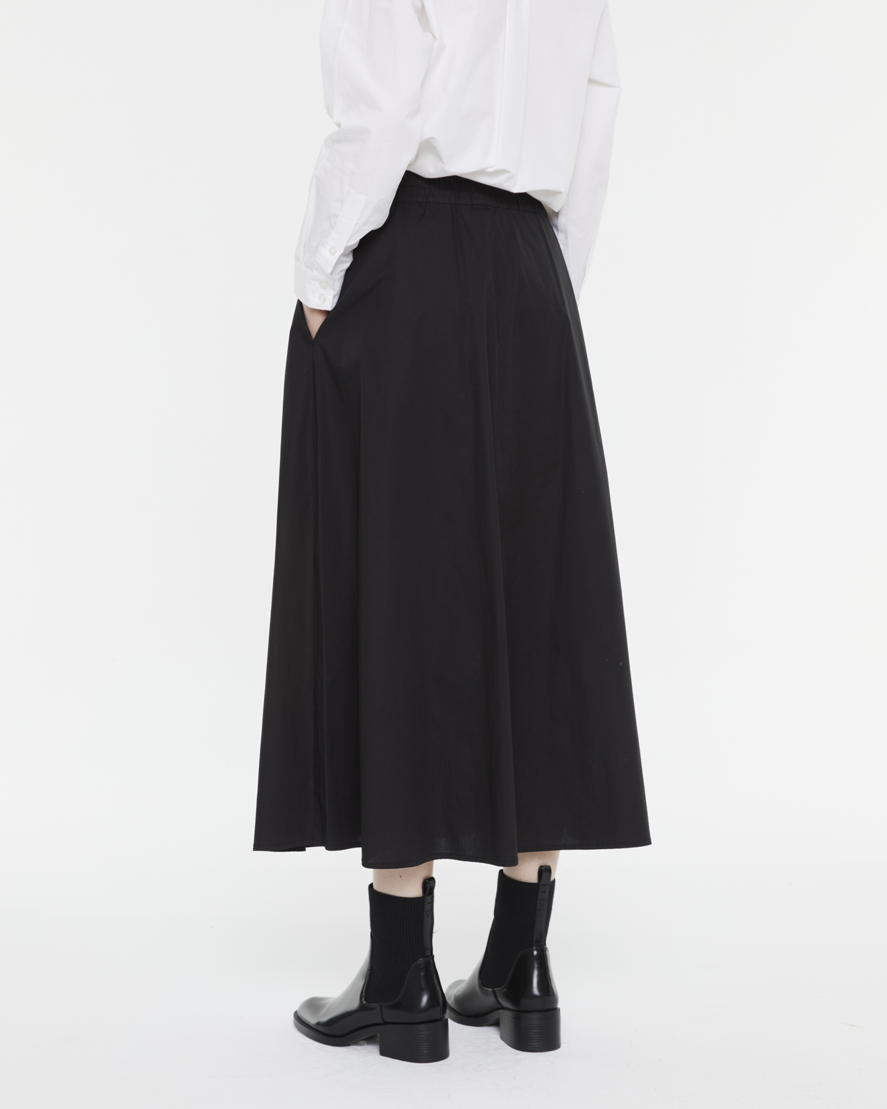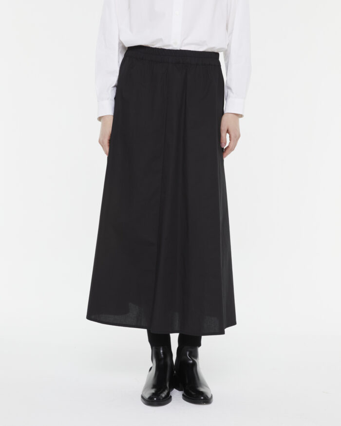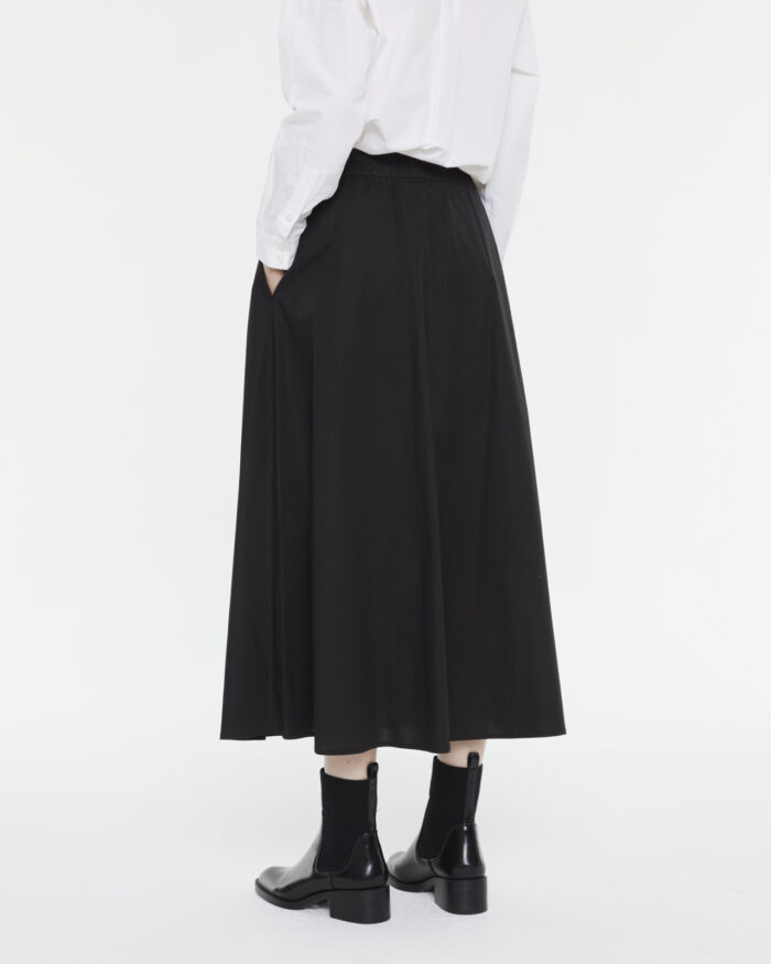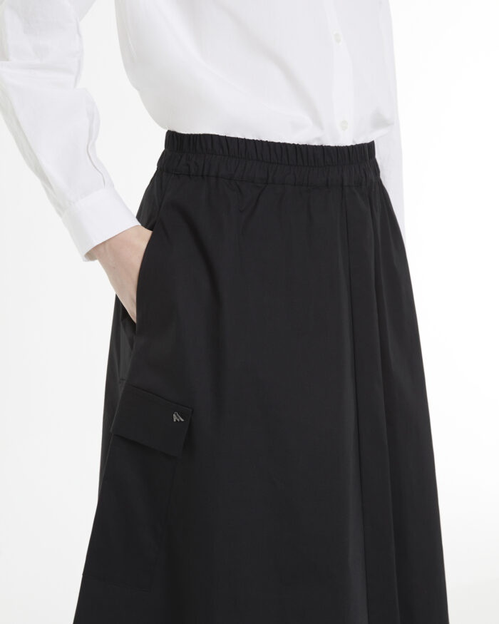 Falda midi de popelín, un bolsillo tipo cargo en lateral derecho y bolsillos laterales. Cintura con goma elástica. Regular fit.