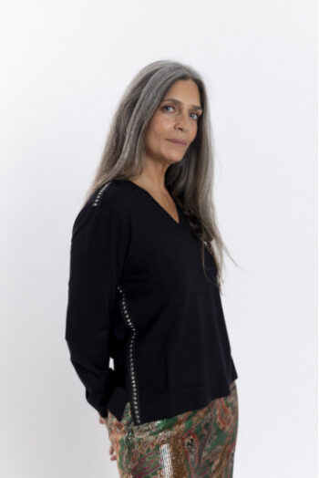 -Tiene aplicaciones metálicas en hombros y costuras laterales