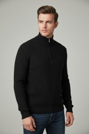 Jersey hombre Pertegaz semicisne cuello cremallera negro diseñado para quienes buscan elegancia, calidez y confort en su día a día. Este modelo destaca por su tacto suave y su tejido de alta calidad, ideal para combinar tanto con looks casuales como con outfits más formales.
