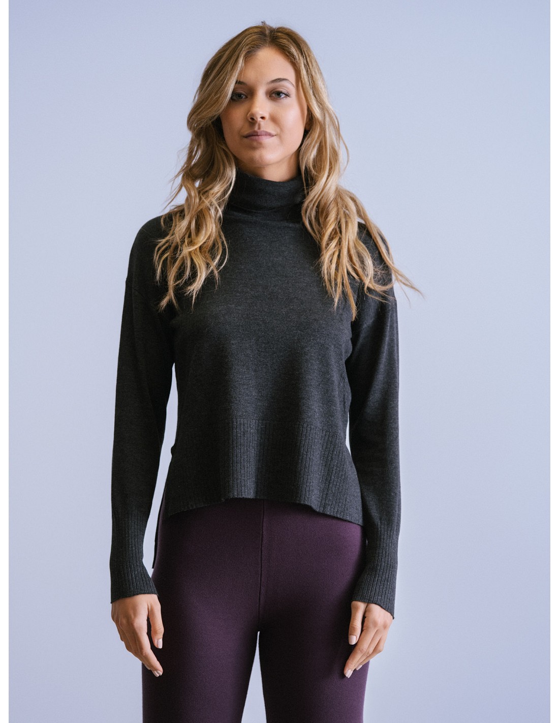 Jersey WNT Collection cuello perkins gris marengo con aberturas laterales, canalé amplio en bajos y mangas