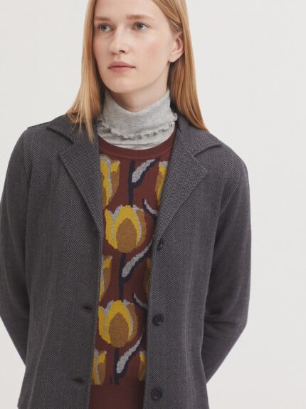 Pantalón recto de jacquard espiga. Made in Portugal.