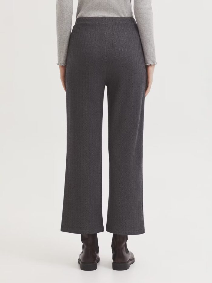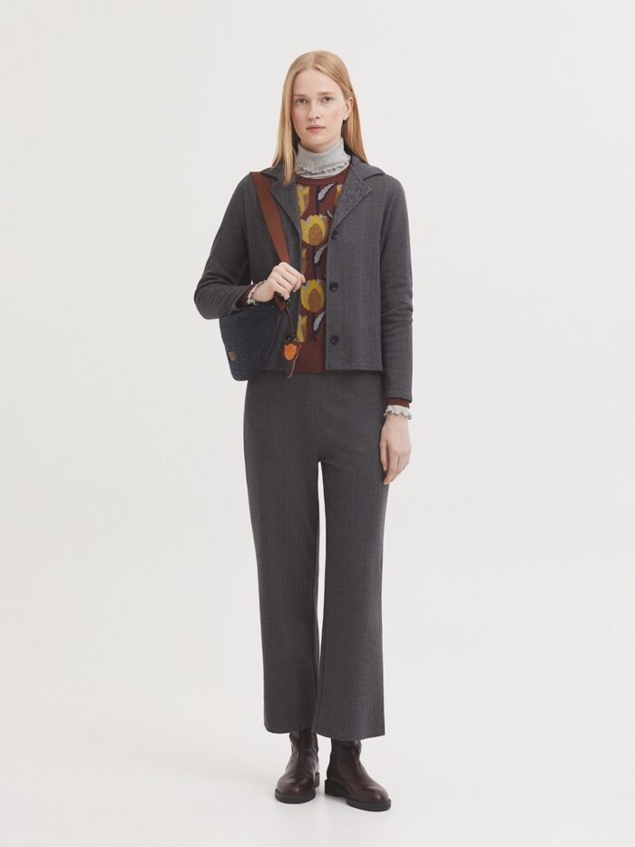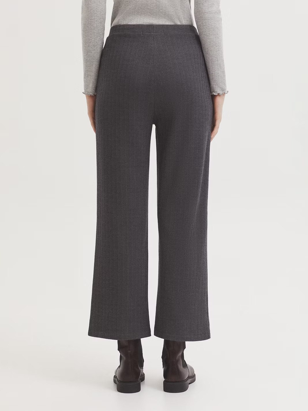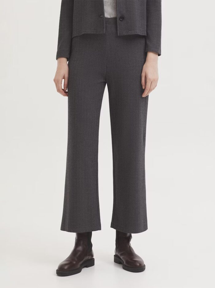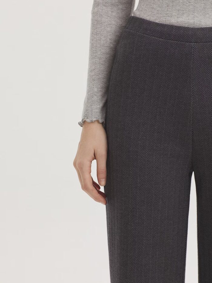 Pantalón recto de jacquard espiga. Made in Portugal.