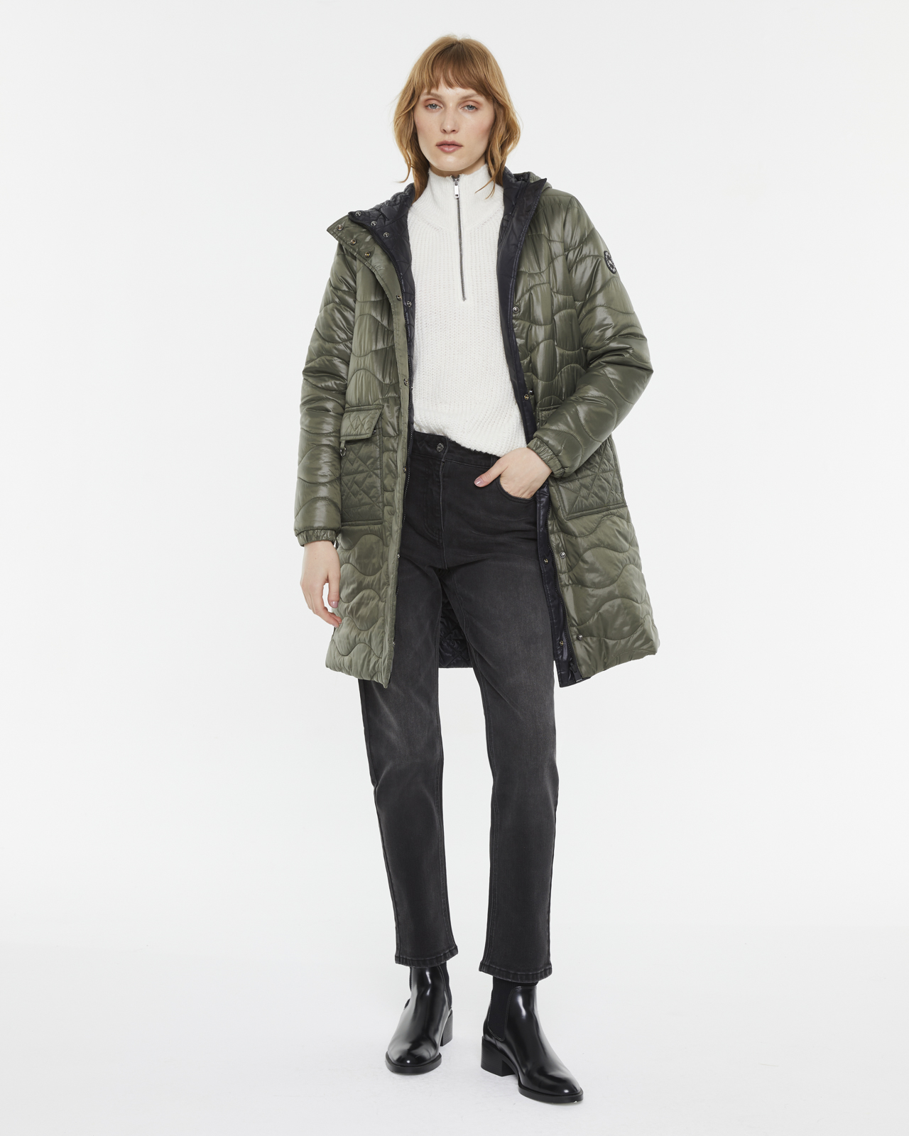 Posibilidad de llevar en tono kaki o negro, capucha desmontable