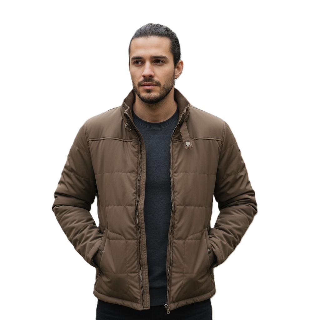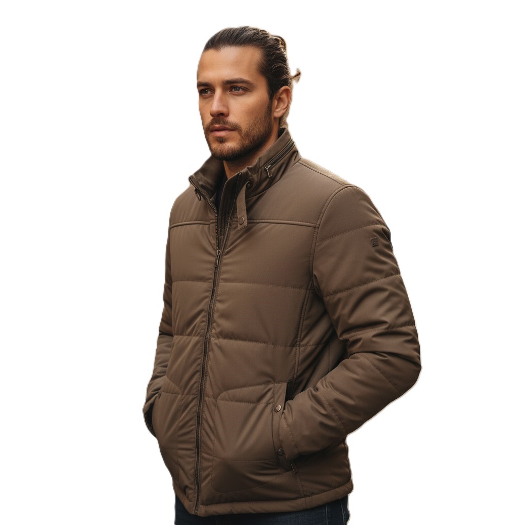Parka de hombre Pertegaz en color tostado, confeccionada en un tejido técnico ligero y resistente. Su diseño acolchado ofrece el equilibrio perfecto entre confort y estilo, aportando abrigo sin renunciar a la elegancia. Incluye cierre con cremallera, bolsillos laterales con botón a presión y cuello alto para una mayor protección frente al frío.