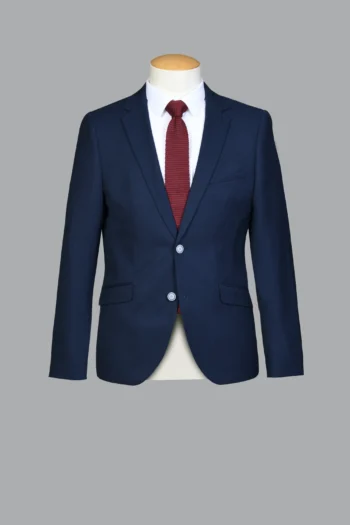 La chaqueta presenta solapa clásica, cierre de dos botones y bolsillos con solapa, además de un pañuelo decorativo que aporta distinción al conjunto. El pantalón, sin pinzas, ofrece una línea más limpia y moderna. Incluye un elástico oculto en la cintura que mejora el ajuste y la comodidad durante todo el día.