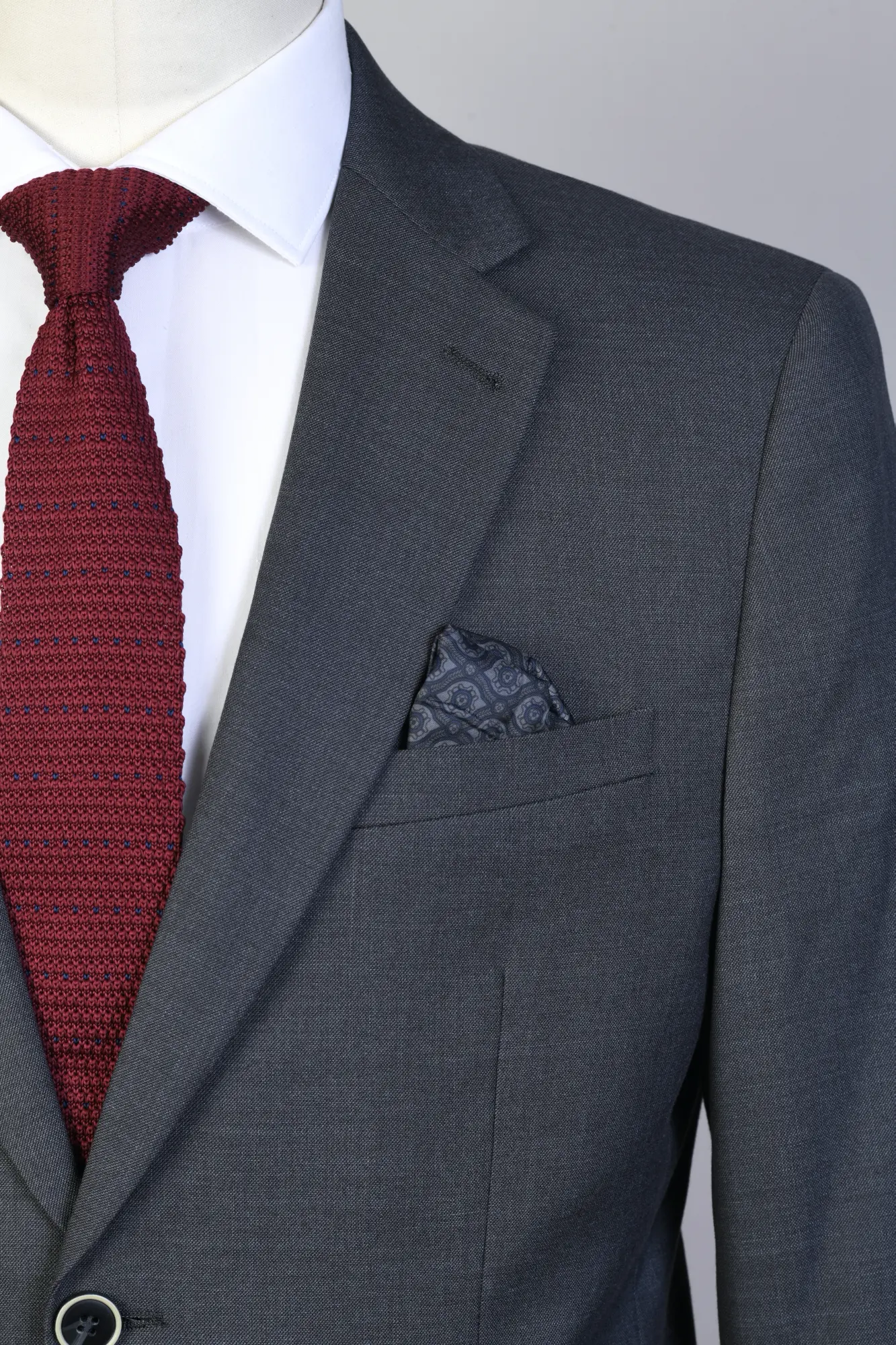 La chaqueta presenta solapa clásica, cierre de dos botones y bolsillos con solapa, además de un pañuelo decorativo que aporta distinción al conjunto. El pantalón, sin pinzas, ofrece una línea más limpia y moderna. Incluye un elástico oculto en la cintura que mejora el ajuste y la comodidad durante todo el día.