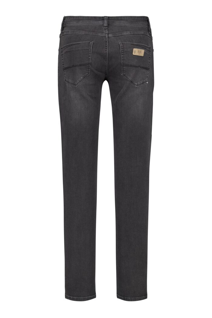 Slim, tiro medio, cadera y muslos rectos, ajustado de rodilla a tobillo, elástico